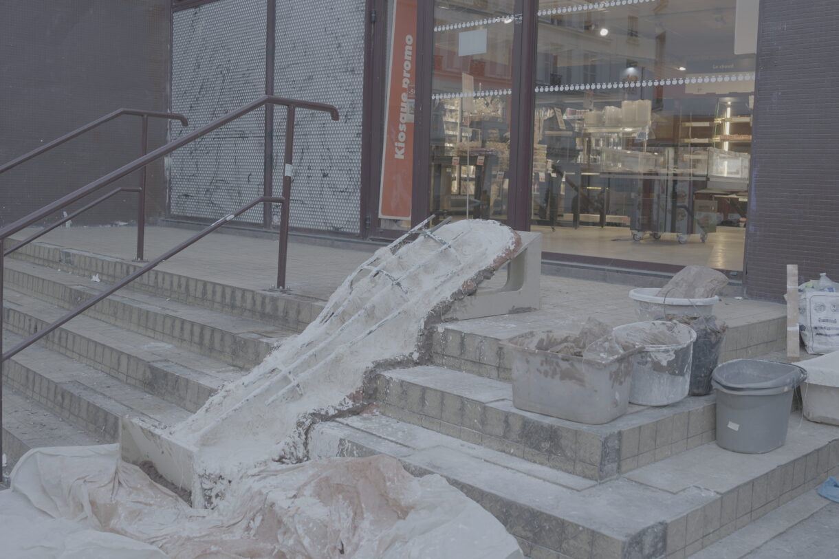 À proximité, dans les espaces de l’Aubette 1928 et au milieu des surfaces colorées imaginées par Sophie Taeuber-Arp, son mari Hans Arp et Theo van Doesburg, elles-mêmes recouvertes en 1938 puis restaurées pour une réouverture au public en 2006, l’exposition se prolonge autour de la première présentation du film Mort assistée (2026). Commandé et produit par le Centre Pompidou – Musée national d’art moderne de Paris dans le contexte de sa fermeture pour travaux, le film propose une vision fantasmagorique d’un musée en maintenance. Florian Fouché y explore la manière dont les institutions culturelles organisent la conservation, la disparition ou la transformation de leurs œuvres. Le film est accompagné de sculptures, dessins et documents liés à sa réalisation, prolongeant la réflexion sur les formes d’« assistance » appliquées aux institutions et œuvres d’art.